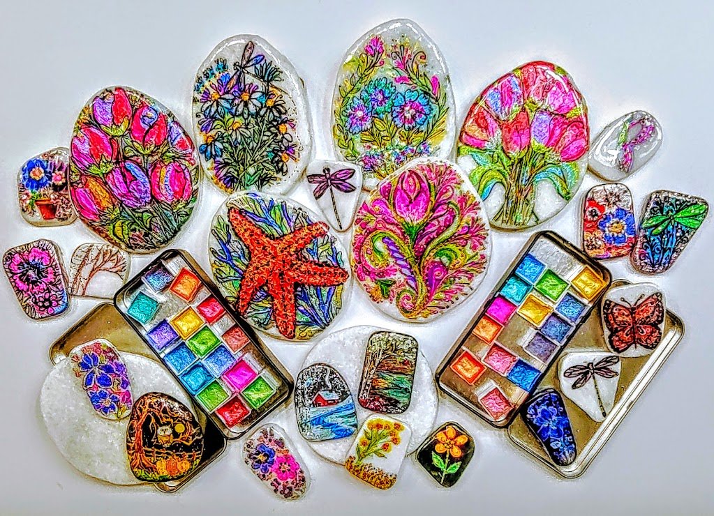 My New HoneyPop watercolors made by maxine that produce lovely results on santorini stones & Rocks