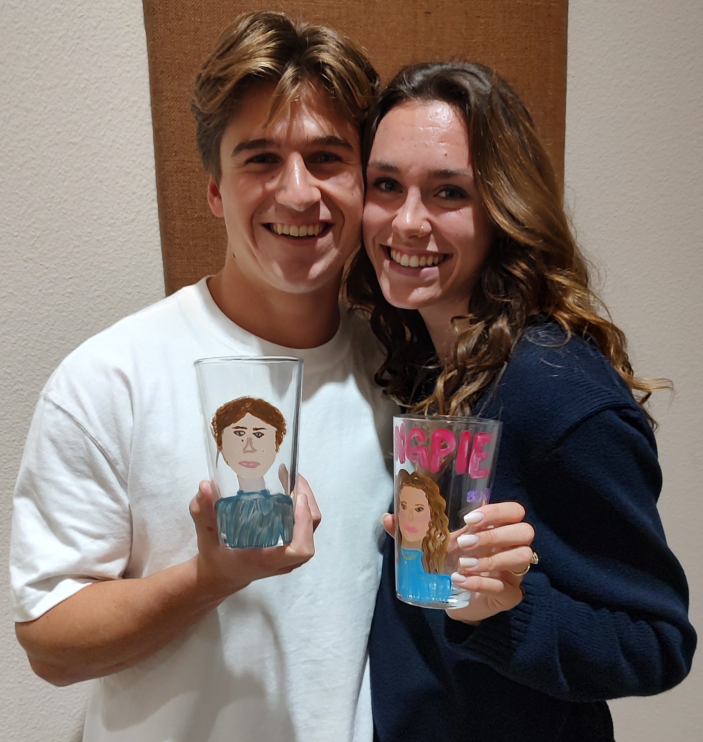 Draw names & Paint a Self Portrait of Them on Canvas or Usable Wine or tall Glassware!